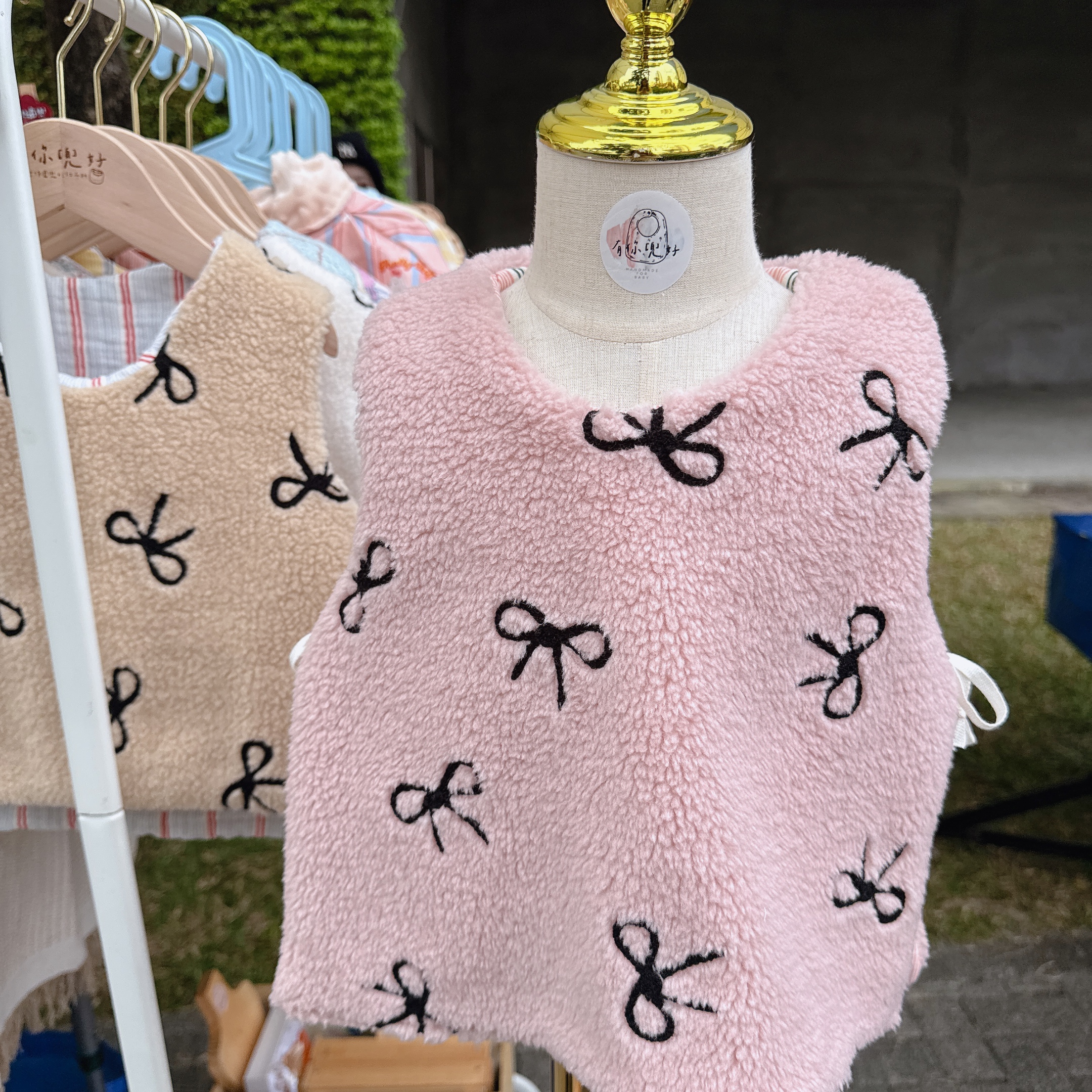 【現貨】羊羔絨綁帶背心 - 粉色蝴蝶結